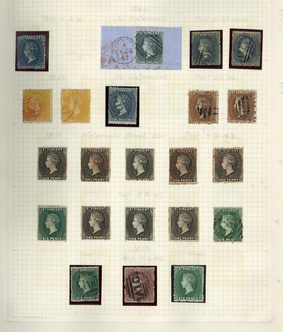 1862-1971 mint and used collection in red album, hundreds including 1861 1d. (3 unused and 3 used), 6d. (unused and 5 used), 1862-68 perf. 11 to 12½ 4d. unused and two used, 6d. unused and used, 1/- (4 used, one on piece), 1869 4d., 1/- indigo, 1/- brown (2), 1871 6d. unused and three used, 1872 1/- deep rose red, 1875 1/- lilac rose (3), 1875-78 1/- (4), perf. 11 to 12½ 4d., 1881 4d. (3, one unused), 1882-83 1d. (2 part original gum), 4d. part original gum, 1883-84 1/0 original gum and used, 1885-93 5/- (5), 1899 ½d. to 5/- (3 sets), 1902 ½d. to 5/-, 1904-11 £1, 1913-17 £1, 1916 War Stamp 4th. printing 1d. overprint double, 1921-32 £1 block of four, 1938-47 set and set in blocks of four, 1949-52 set in set to £1 in blocks of four, later issues, etc., mixed condition