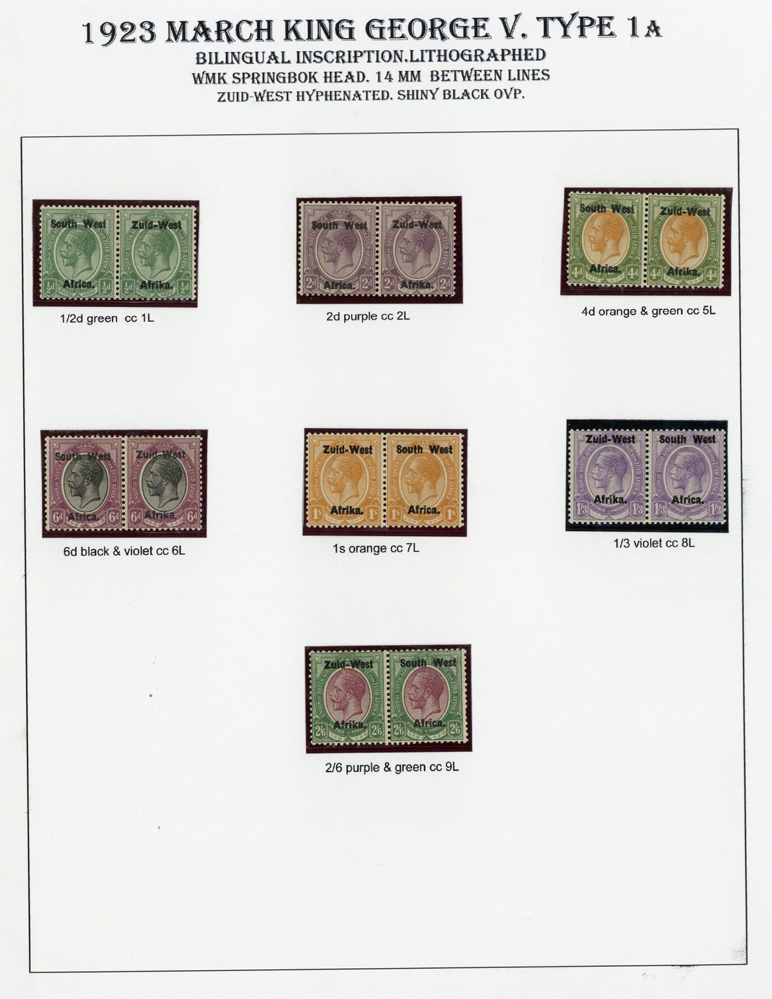 — ½d. green. 2d. dull purple, 4d. orange-yellow and sage-green, 6d. black and violet, 1/- orange-yellow, 1/3d. pale violet and 2/6d. purple and green, bi-lingual pairs, each with Litho. overprint in shiny ink; large part original gum, fine. S.G. 1d, 3c, 5a, 6a, 7a, 8b, a, £459