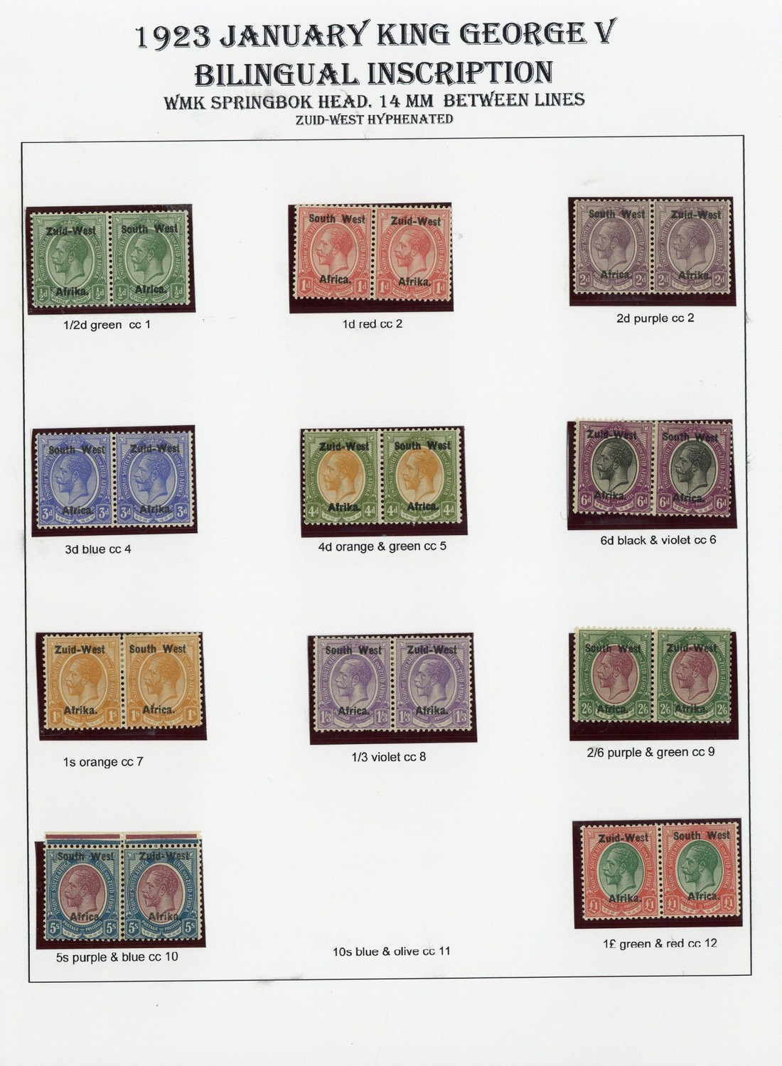 — mint and used collection on pages, over 300 stamps including 1d. bi-lingual pair variety "Af.rica", 2d. single overprint inverted, 5/- and £1 bi-lingual pairs, blocks, minor varieties, control number pairs with values to 2/6d., etc., chiefly good to fine. S.G. 1-12
