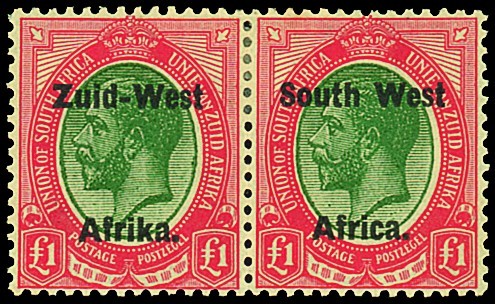 1923 (May) Setting 11 5/-, 10/- and £1 horizontal pairs, mint; £1 with small tone, otherwise fine. S.G. 13-15, £1,500. Photo