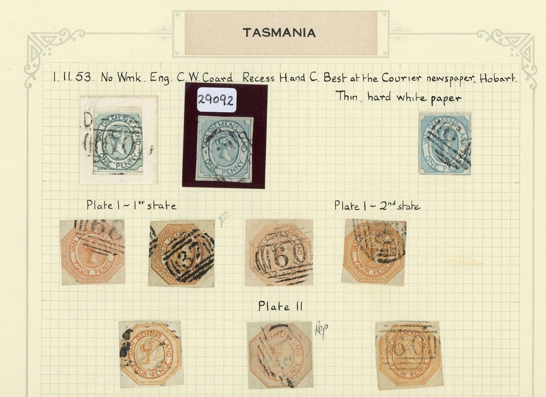 1853 1d. (3, one on small piece) and 4d. (6, one repaired, plus a forgery); a few faults in places though of generally good to fine appearance