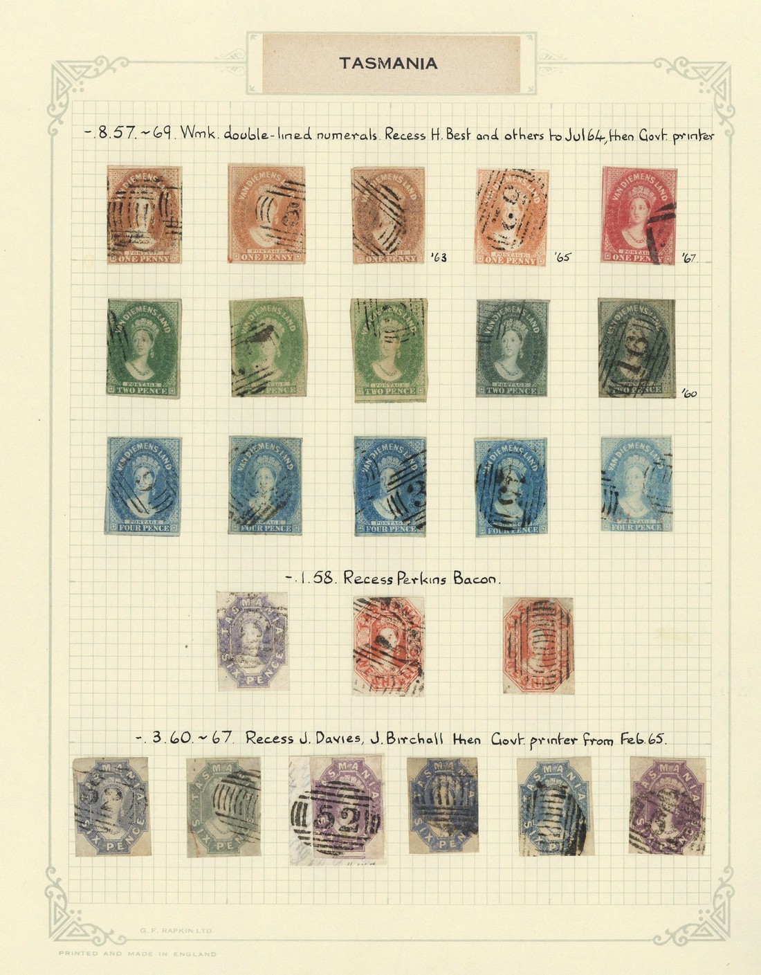 1855-91 collection of Chalon issues, including 1855 1d., 2d. and 4d. (3), 1856-57 4d. (2, one apparently unused) and pelure paper 1d. (2, one apparently unused), 1857-69 1d. (5), 2d. (5), 4d. (5), 6d. and 1/- (2), 1860-67 6d. (5, two reddish mauve), , 1863-69 trial separations (5, none guaranteed) and 1864-69 range to 1/-; condition mixed with viewing essential