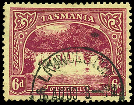 — 6d. lake, perf. compound of 12½ and 11, part Launceston 1900 c.d.s. at foot; small crease at upper left. Scarce. S.G. 248b, £475. Photo