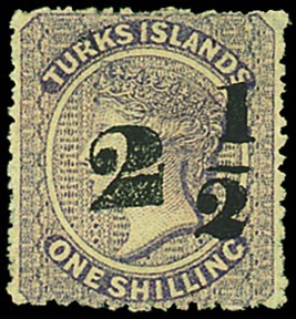 — 2½d. Setting 8 "2½" Type 23 on 1/- lilac, unused without gum. S.G. 36, £600. Photo