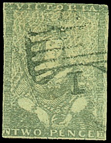 1850-53 Sixth Printing, 2d. grey, margins virtually all round, cancelled by Butterfly "1". S.G. 15b. Photo