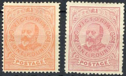 1905-13 perf. 12½ £1 salmon and £1 rose, both with part original gum. S.G. 431, 431a, £600