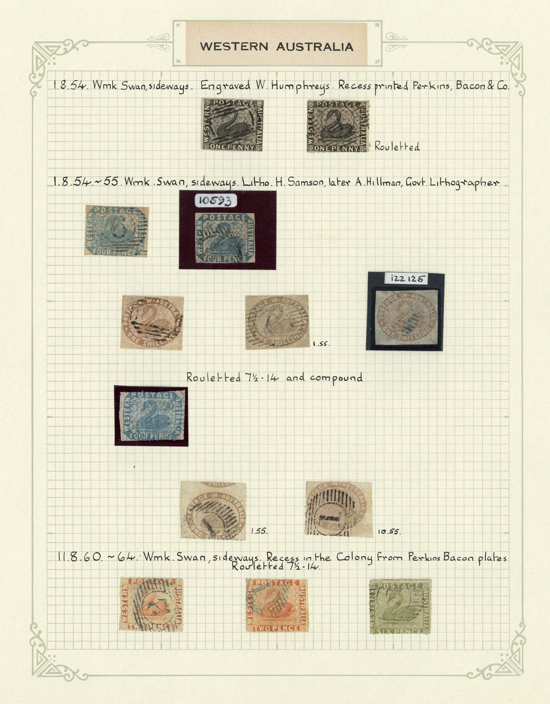 1854-1912 used collection with a very good representation of issues and including 1854-55 1d. (2), 4d. (3, one apparently rouletted) and 1/- (5 with shades and two rouletted), 1857-59 2d. (3) and 6d. (3, one rouletted), 1860-64 2d. (4, two rouletted), 4d. (2) and 6d. (3, one rouletted), 1861-64 group with fine very rough perf. 1/-, 1864-79, 1876-81 and 1882-85 selections, 1885 1d. on 3d. (3), 1888 trio, 1895 ½d. in red and green on 3d. (2), 1902-12 range to £1 (2) and 1905-12 selection to 5/-; generally good to fine and an attractive lot