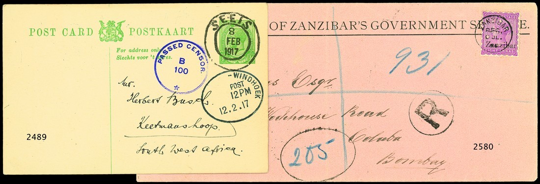 1896 (July) pink On Sultan Government Service envelope (210x93mm., slightly truncated at one side) registered to Bombay, bearing 1895-96 8a. magenta cancelled by Registered c.d.s. and showing "R" in circle and oval for registration number at foot; the adhesive with defects though a scarce stamp used alone. Photo