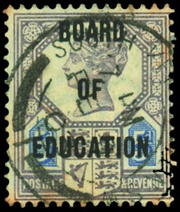 Board of Education: 1902 5d. dull purple and blue, c.d.s. cancellation, some staining but otherwise fine and rare. S.G. O81, £1,200. Photo