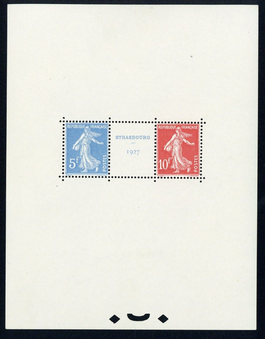 1927 Strasbourg miniature sheet, unmounted mint; a few light wrinkles, fine. MS454b, £1,400. Yvert €3,259