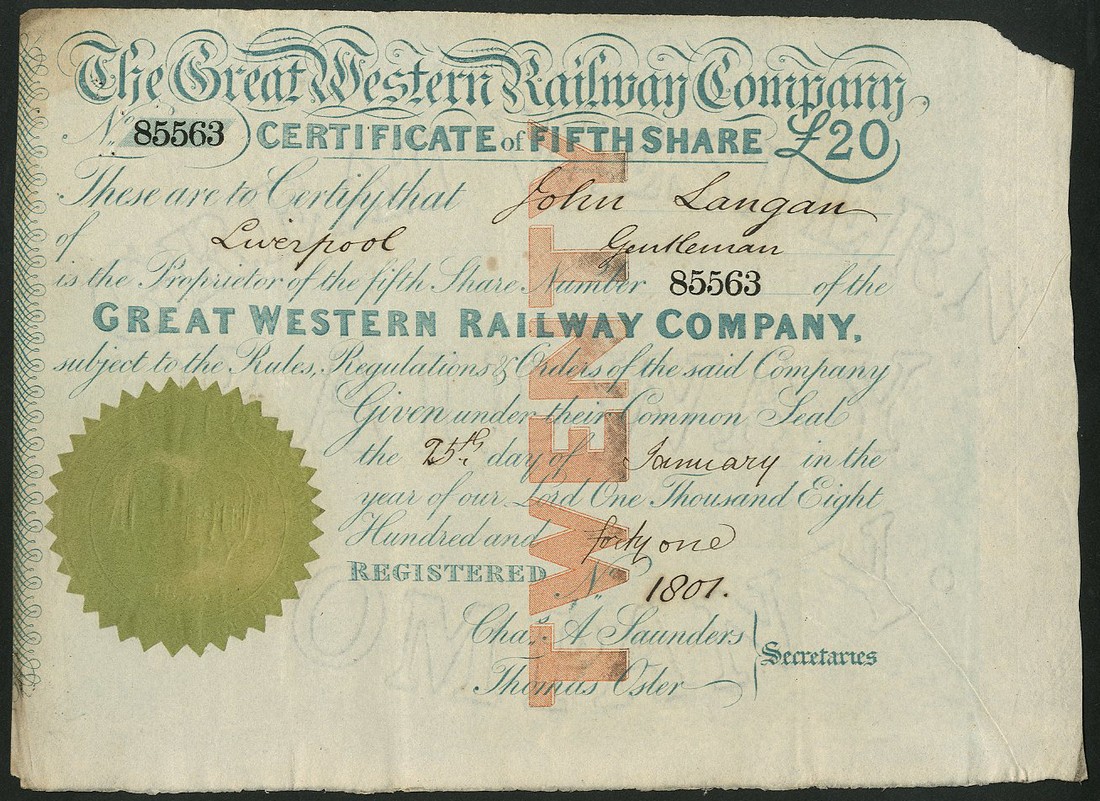 The company was incorporated in 1835 after numerous other attempts for a railway linking London to Bristol. The line opened in 1841 and soon built connections with other railways in the West of England. It also absorbed, purchased and leased railways running in the Midlands and Wales, eventually covering 6398 miles of single track by 1921.