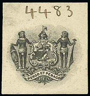 Small Arms of the company unframed (25mm x 26mm) and similar to issued stamps, manuscript die number "4483" below, fine. Photo
