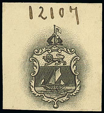Small Badge of the company unframed (28mm x 30mm) and similar to issued stamps, manuscript die number "12107" below, fine. Photo