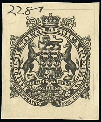 1896 Arms with ends of scrolls between the legs of springboks (27mm x 32mm), manuscript die number "2281" at top left, fine. Photo