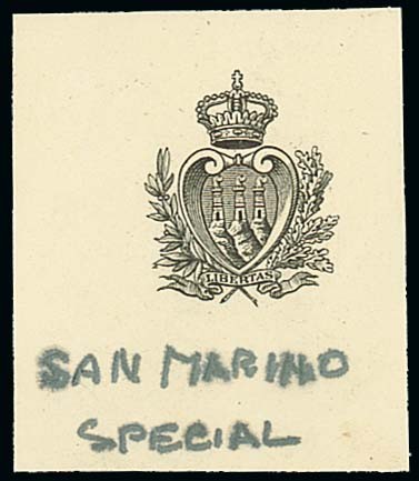 1930 (c.) Coats of Arms, unframed (30mm x 35mm), manuscript "san marino/special" below, fine. Photo