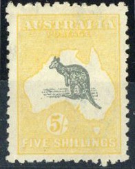 5/- grey and yellow, lightly hinged; a few short perfs. at left. S.G. 42, £250