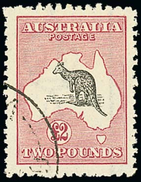 £2 black and rose, cancelled-to-order with full gum and rare thus as by this time most of the Specimen packs contained the overprinted version of this stamp; usual rough perfs., fine. S.G. 45, BW56w. Photo