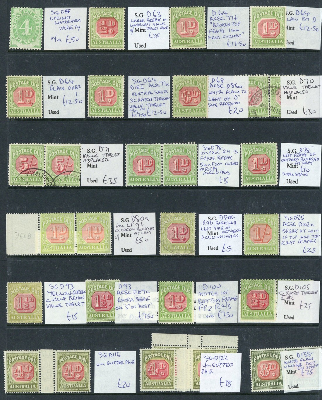 1902-60 mostly mint selection (30), including 1902 4d. watermark upright, 1909-10 ½d. with broken value tablet, 2/- and 5/- used pairs with misplaced value tablet, 1912-23 1d. pair, one with buckled value tablet, 1938 4d. gutter pair, 1946-57 4d. gutter pair (2), etc., chiefly fine