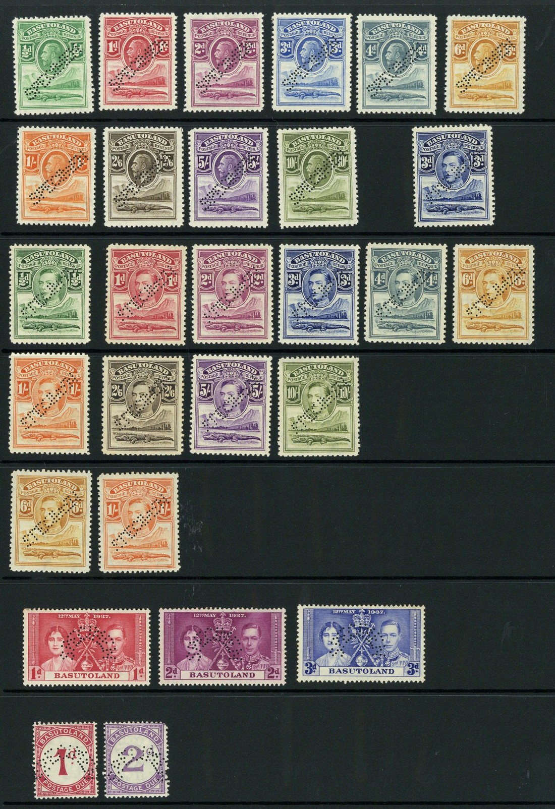 1933-52 selection (28) including 1933 ½d. to 10/-, 1937 Coronation set and 1933-52 Postage Dues each perforated "specimen", large part original gum;some gum toning, otherwise fresh and fine. S.G. between 1s and D2s, £510+