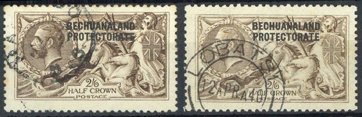 De La Rue 2/6d., two shades, one (a little stained) with Maribogo c.d.s., the other (traces of foxing) with clear Lobatsi 1940 c.d.s. S.G. 85, 86, £475