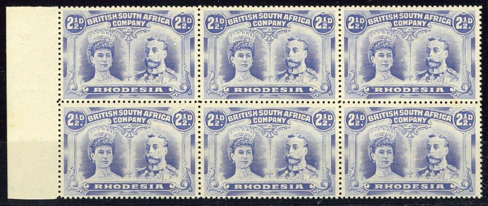 2½d. ultramarine marginal block of six from the left of the sheet, unmounted mint with a few natural flat spots. S.G. 172, £450