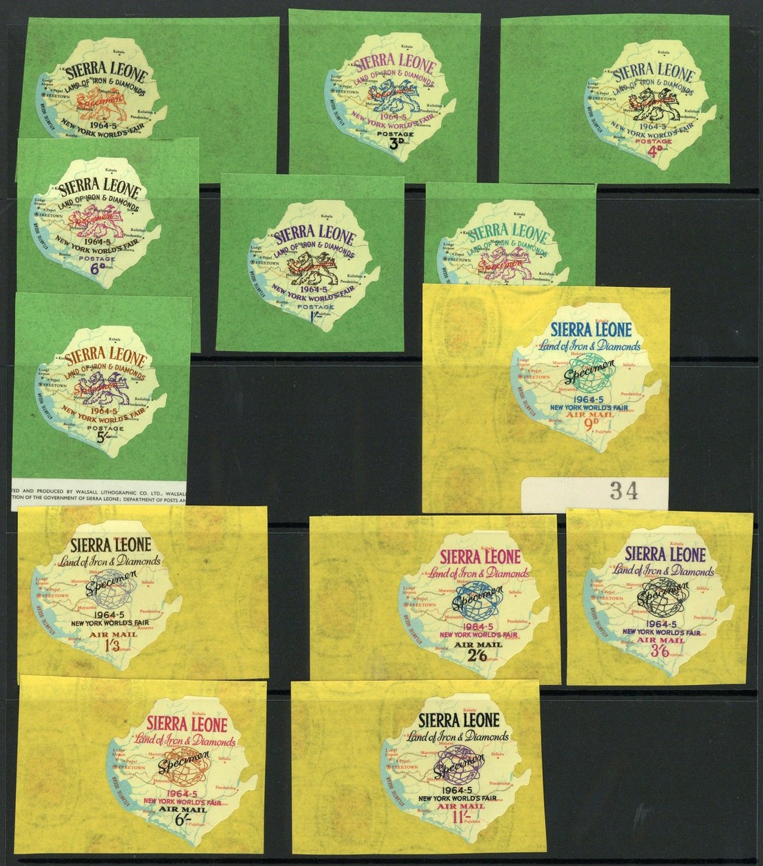 1964 (Feb.) World's Fair 1d. to 11/- less 7d. and 1964 (May) President Kennedy Memorial 1d. to 11/- set of fourteen, each overprinted "Specimen", fine. S.G. 285-312