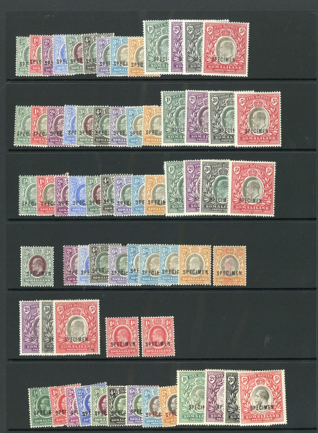 1904-42 a selection (112) with some duplication including 1904 ½d. to 5r., 1912-19 MCA ½d. to 5r., 1935 Jubilee set and 1942 ½d. to 5r. each overprinted or perforated "specimen", part to large part original gum, some minor faults, generally good to fine. S.G. between 32s and 116s, £1,160+