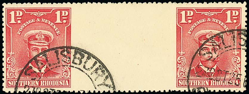 1d. bright rose horizontal interpanneau pair, imperforate across the interpanneau margin, neatly cancelled by Salisbury 1925 c.d.s.; the left-hand stamp with a vertical crease, otherwise fine. Rare. Briefmarkenprüfstelle Certificate (2003). Photo