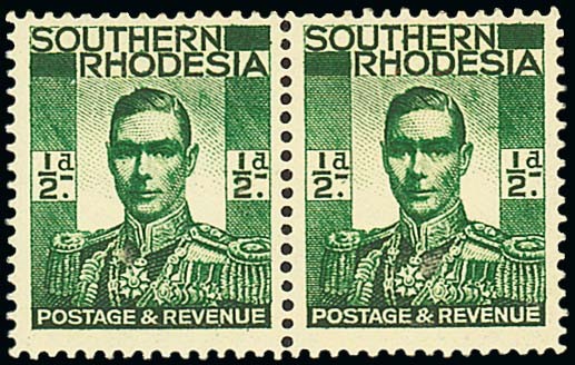 ½d. green horizontal pair with strong over-inked impressions with the King appearing "blind", fine mint. Most unusual. Photo