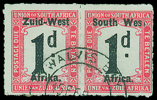 — 1d. horizontal pair with variety "Wes" for "West", neatly cancelled with Walvis Bay c.d.s.; fine. S.G. D7a, £350