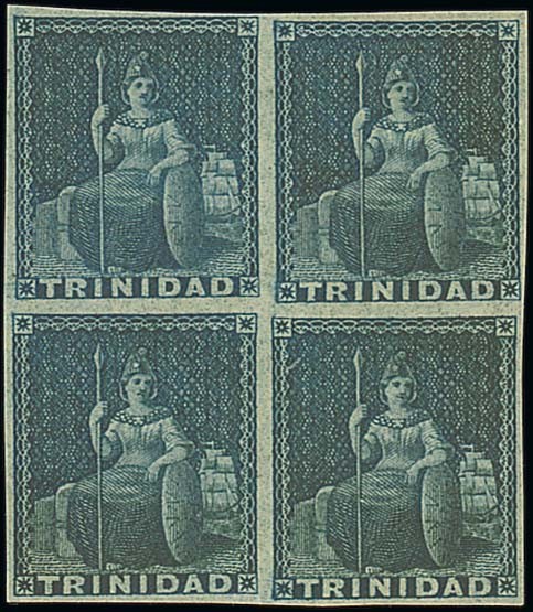 1851-55 (1d.) deep blue block of four with part original gum. S.G. 4, £600. Photo