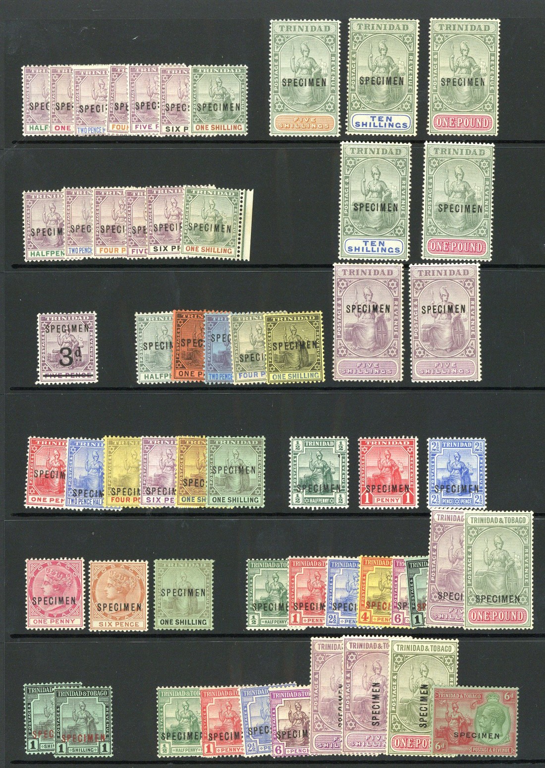 1896-1946 selection (64) including 1896-1906 ½d. to £1, 1901-06 ½d. to 5/-, 1913-23 ½d. to £1, Postage Dues 1923-45 1d. to 1/- and 1946 Victory set each overprinted or perforated "specimen", a few small faults, generally good to fine. S.G. between 114s and D25s, £875+