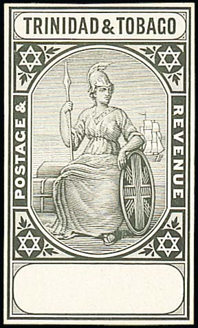 1913 5/-/£1 master die proof, stamp-size in black on glazed card; fine. Photo