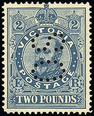 Note: In "Stamps of Victoria" Geoff Kellow states that the £2 perf. "OS" has not been seen. There was an example in the William Frazer collection, sold by Spink in 2003 for £2,500