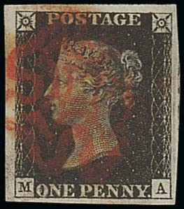 MA, generally large margins, red Maltese Cross cancellation; very fine. Brandon Certificate (2008). Photo