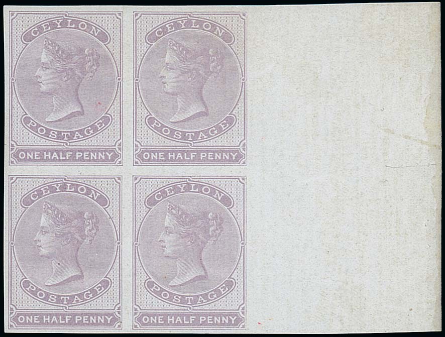 — ½d. dull mauve marginal block of four from the right of the sheet, large part original gum, lower pair with light gum bends, otherwise fresh and fine. S.G. 17. Photo