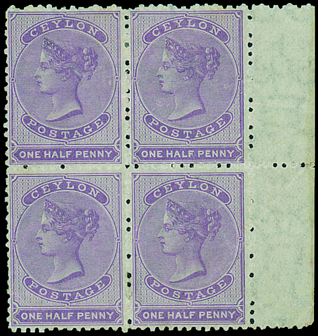 ½d. mauve marginal block of four from the right of the sheet, large part original gum, small hinge remainder; two diagonal creases in lower pair, otherwise fresh and fine. S.G. 48c
