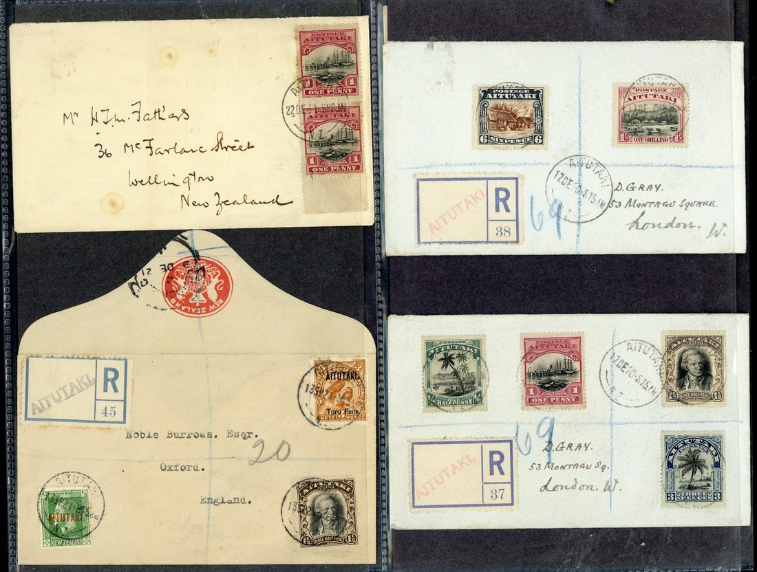 1919-21 group of covers (several registered) with 1913-19 1½d. in envelope to U.S.A. (2) and 1d. stationery card; Aitutaki (4), Penrhyn Islands (2) and 1918 Samoa (2, one to the Sandwich Islands); several are philatelic. (11)