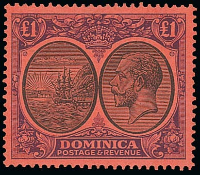 — £1 black and purple on red, fresh and fine very lightly mounted mint. S.G. 91, £225. Photo