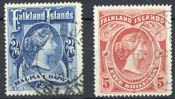 1898 (5 Oct.) 2/6d. blue and 5/- red; fine used. S.G. 41-42, £525
