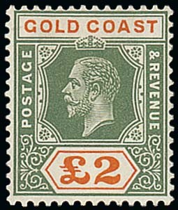 1921-24 £2 green and orange; fine mint. S.G. 102, £500. Photo