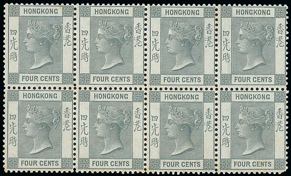 4c. grey block of eight (4x2), unmounted mint; a few light gum tones. S.G. 9, £1,280+. Photo