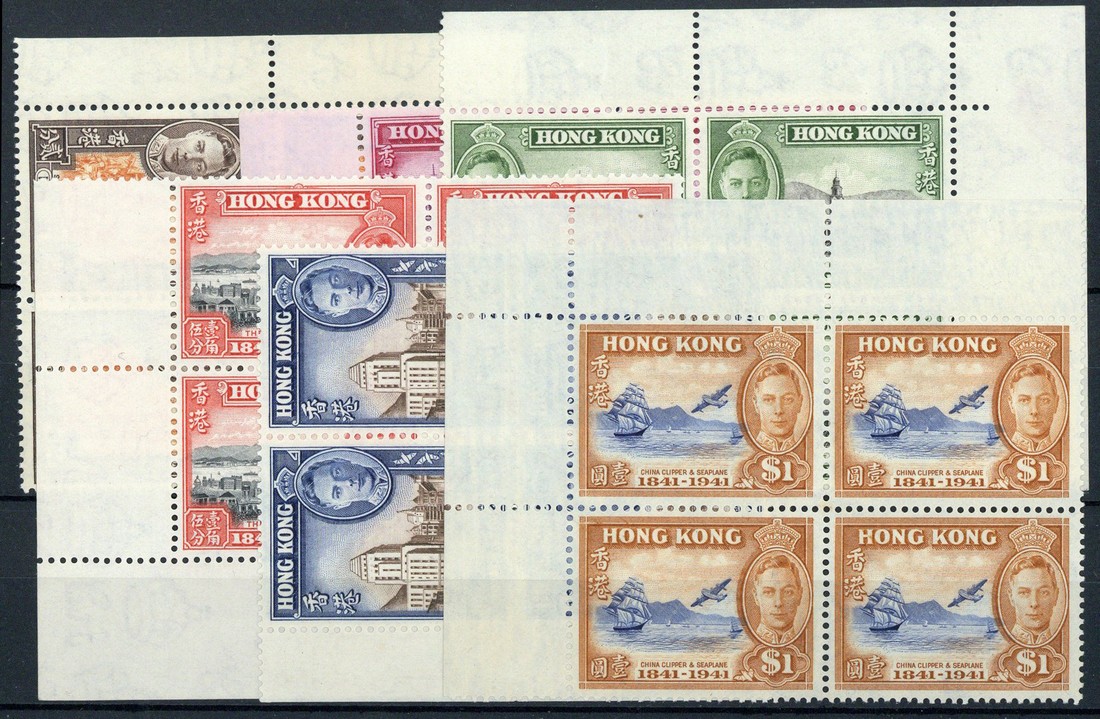 1941 (26 Feb.) Centenary of British Occupation set of six to $1, marginal blocks, fine unmounted mint. S.G. 163-68, £360