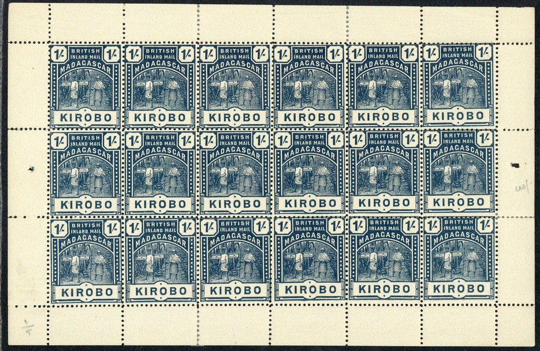 1895 1/- slate-blue complete sheet, a top row strip of six and blocks of six and nine, unmounted mint. S.G. 60, £468
