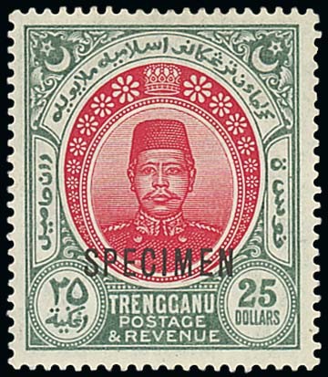 1912 $25 rose-carmine and green, overprinted "specimen", fine mint. S.G. 18, £350. Photo
