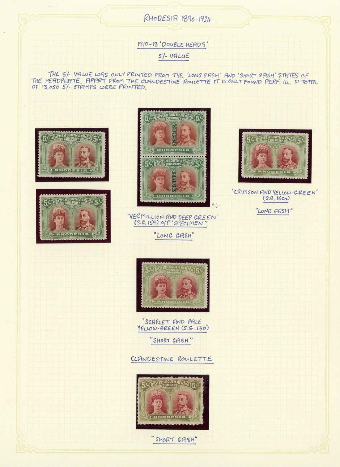 5/- selection comprising a vertical pair overprinted "specimen" (no gum), vermilion and deep green (2), crimson and yellow-green and scarlet and pale yellow-green mint, scarlet and yellow-green shades (2, one [48]) used, and a clandestine roulette; a couple with small faults though of fine appearance
