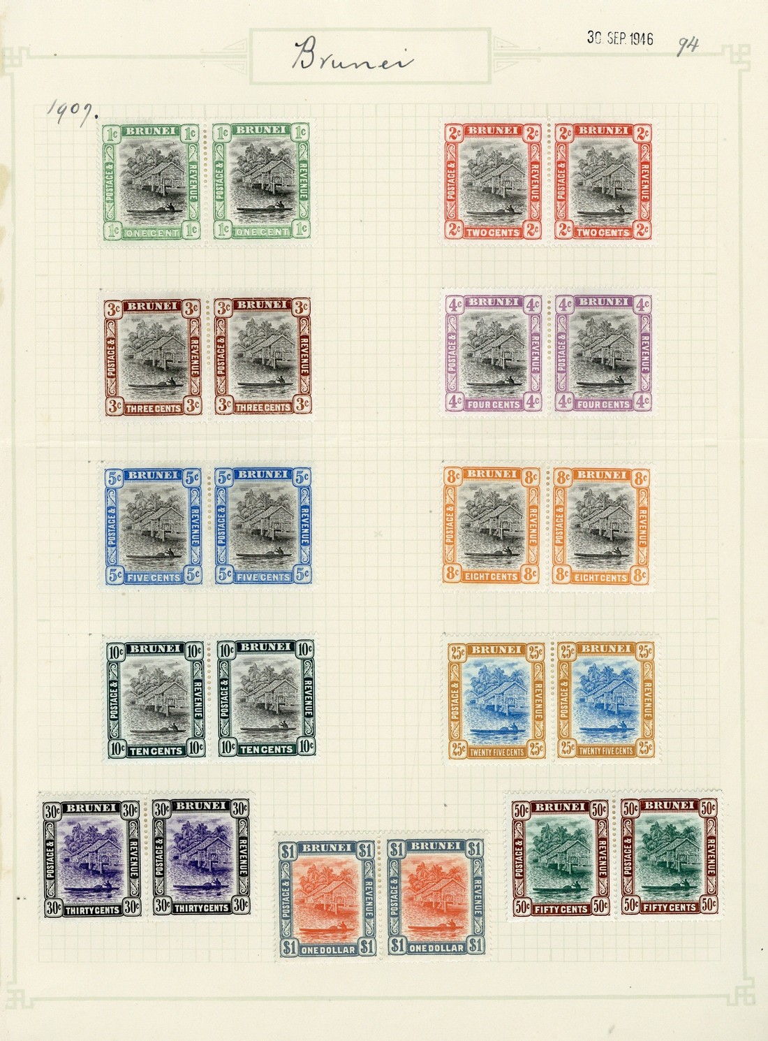 1907-10 MCA 1c. to $1 set of eleven in horizontal pairs, fresh and fine mint. S.G. 23-33, £400