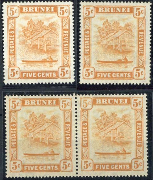 1947-51 Script 5c. orange perf 14 single and perf 14½x13½ horizontal pair, both showing "5c" retouch, fine mint. S.G. 82a, 82c; £210+