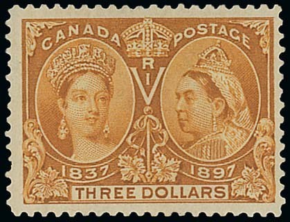 1897 $3 bistre, large part original gum, fresh and fine. P.F. Certificate (1978). S.G. 138, £1,400. Photo