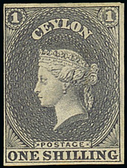 1862 smooth paper, imperforate 1/- slate-purple, no gum, cut close at left fine. A lovely impression. Rare. Cat. £4000. Photo